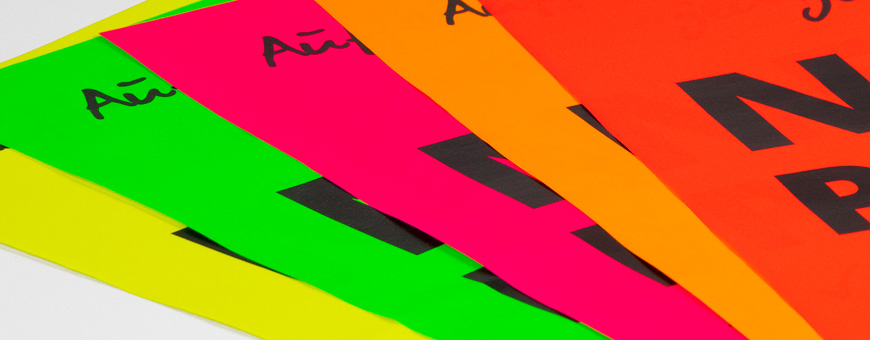 1/0-farbig schwarz bedruckt Endformat: DIN A2 (420 x 594 mm) Vorderseite in einer von fünf Neonfarben Rückseite weiß